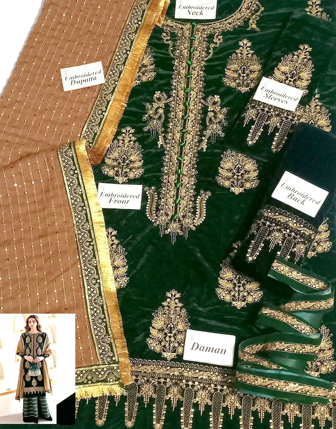 Looking to buy Royal Heavy Embroidered Bottle Green Velvet Dress for Party Wear & Weddings online in Pakistan? Discover modern designs, reliable quality, and the best price available. Shop now and enjoy fast delivery and secure checkout.