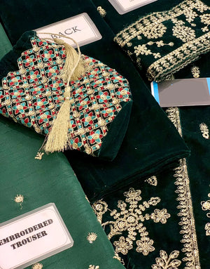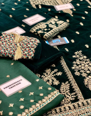 Looking to buy Luxe Embroidered Bottle Green Velvet Dress for Wedding & Party online in Pakistan? Discover modern designs, reliable quality, and the best price available. Shop now and enjoy fast delivery and secure checkout.