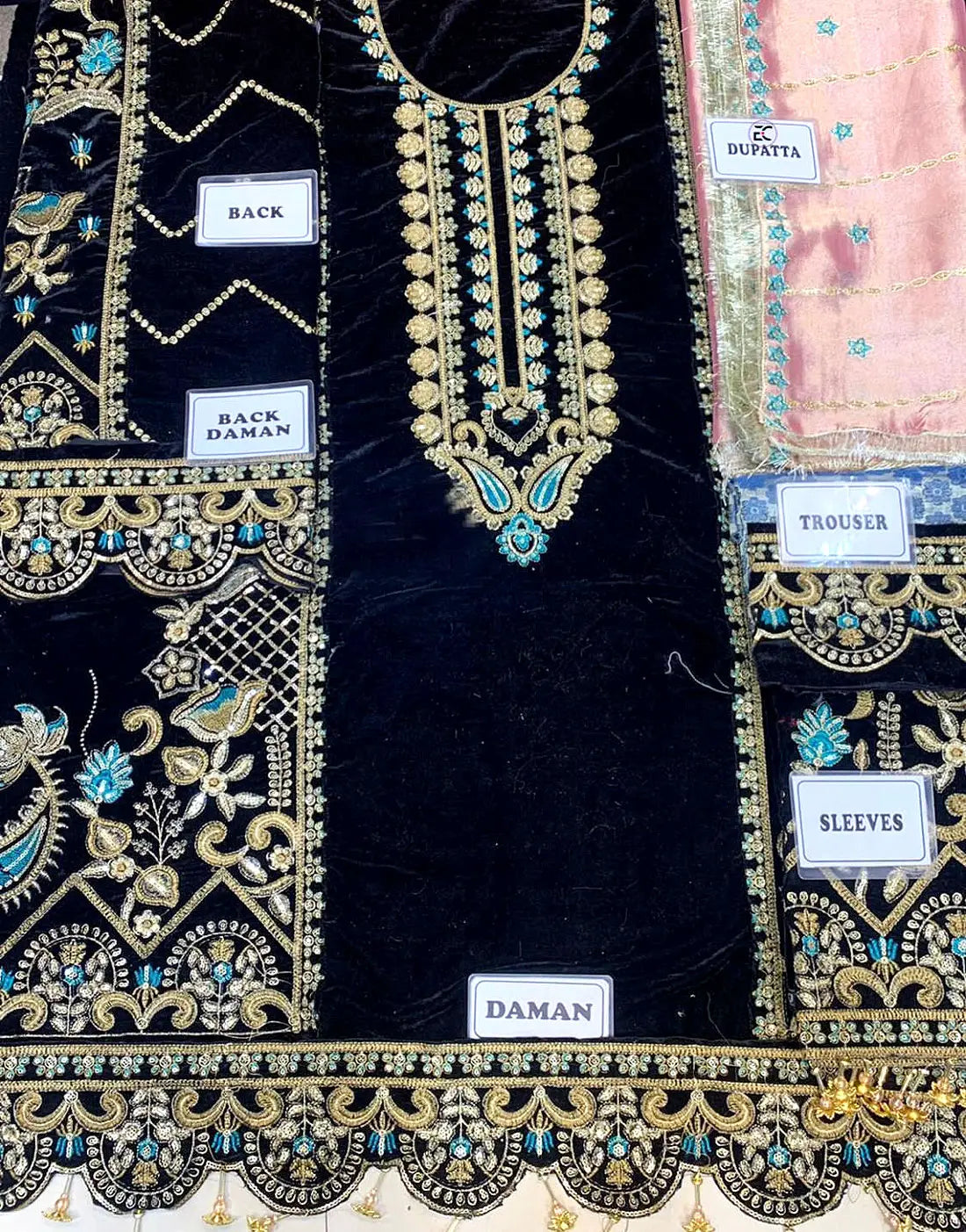 - Sleeves: Embroidered Velvet Sleeves