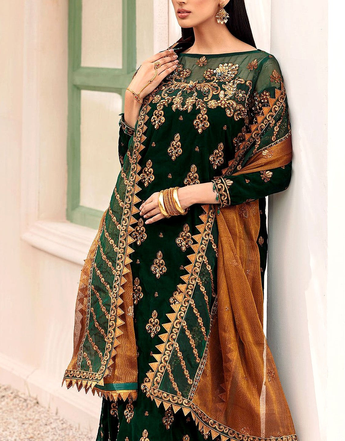 Looking to buy Adorable Heavy Embroidered Bottle Green Velvet Wedding Dress with Emb. Net Dupatta online in Pakistan? Discover modern designs, reliable quality, and the best price available. Shop now and enjoy fast delivery and secure checkout.