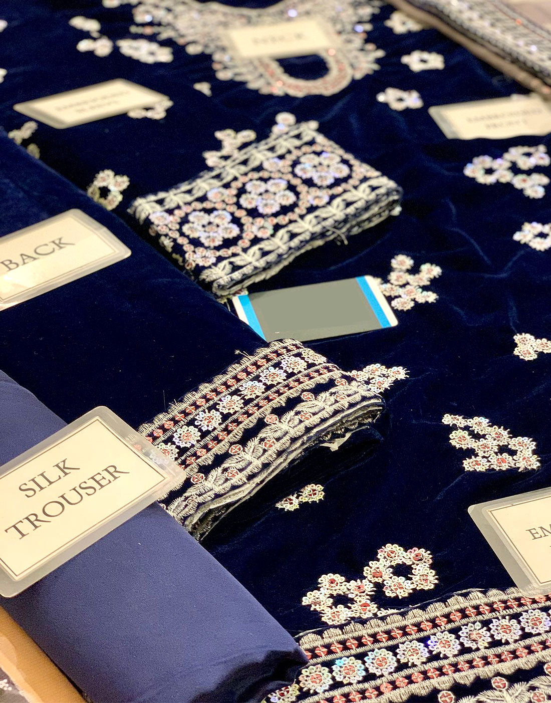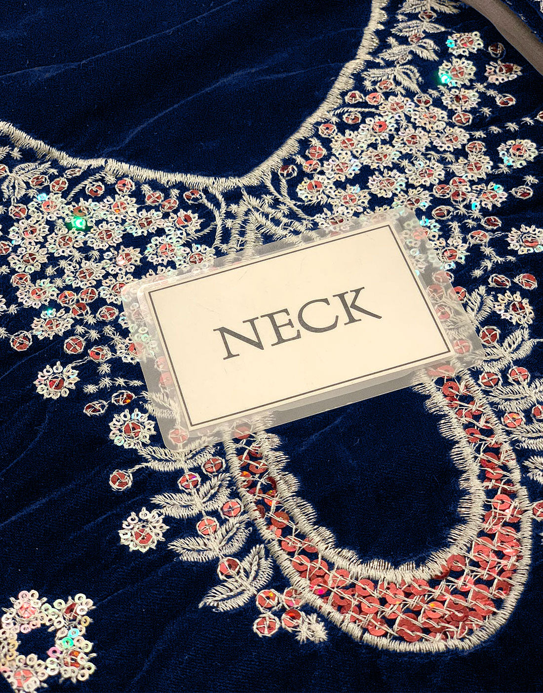 - Front: Embroidered Velvet Front