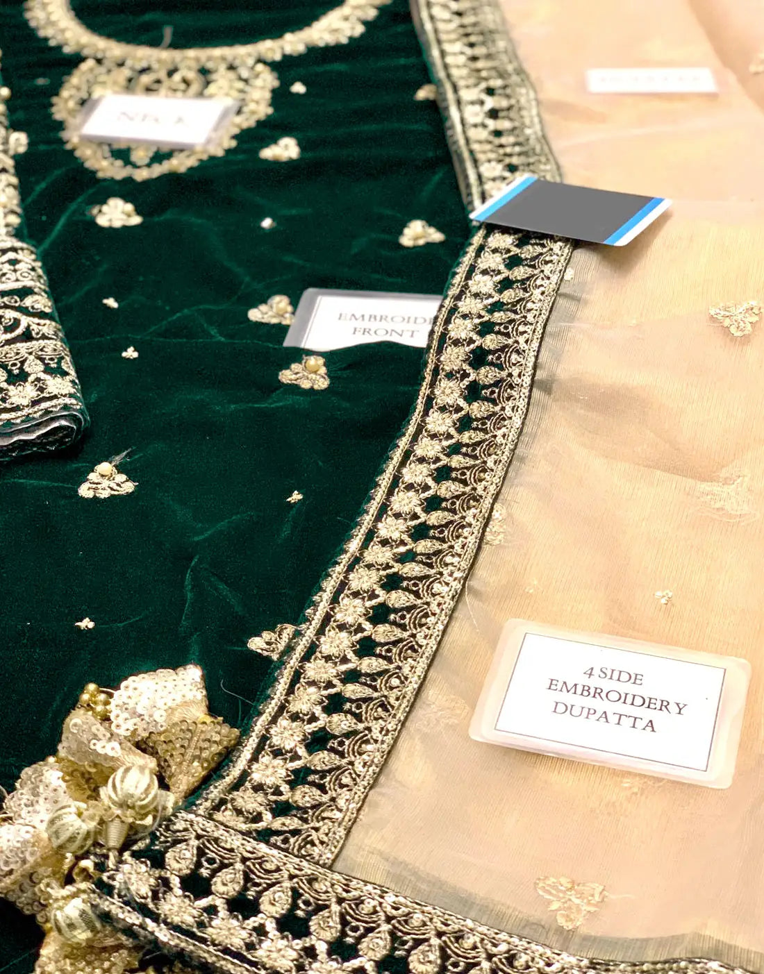 Looking to buy Luxe Embroidered with Handwork Bottle Green Velvet Dress - Perfect for Winter Events online in Pakistan? Discover modern designs, reliable quality, and the best price available. Shop now and enjoy fast delivery and secure checkout.