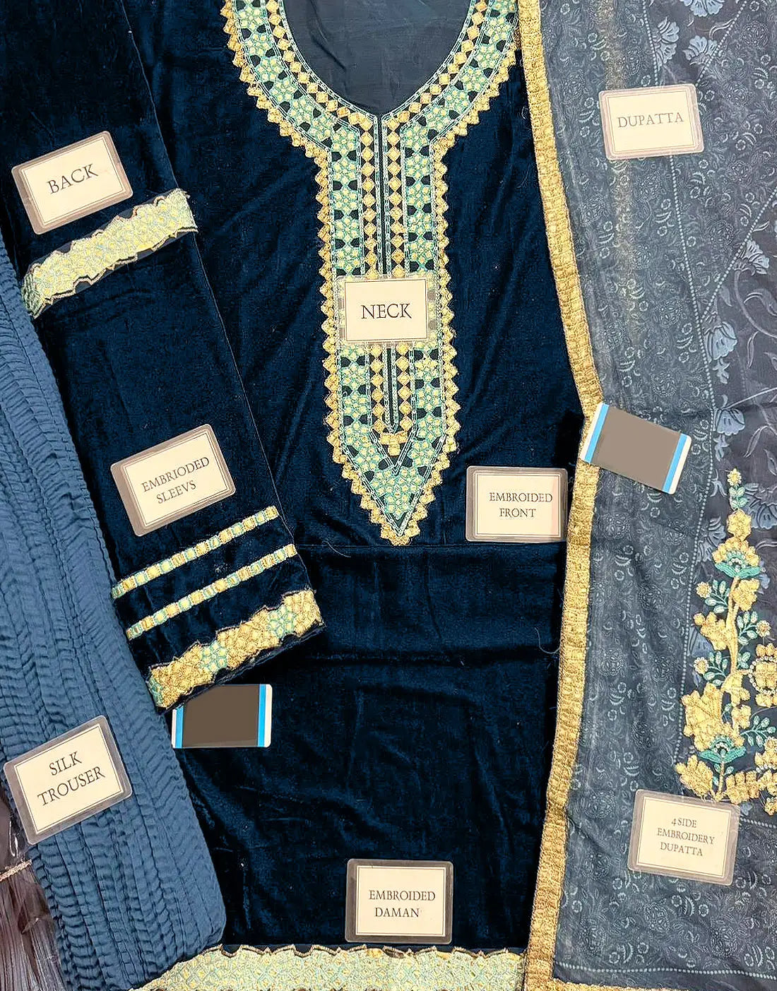 Looking to buy Glamorous Embroidered Peacock Blue Velvet Dress for Weddings & Parties online in Pakistan? Discover modern designs, reliable quality, and the best price available. Shop now and enjoy fast delivery and secure checkout.