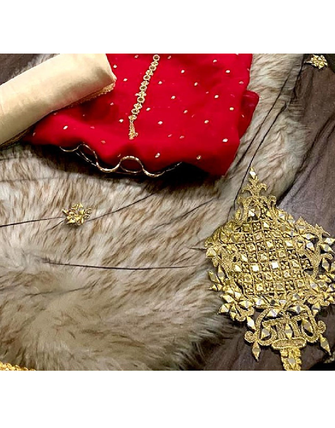 Are you looking for a fancy traditional ladies dresses that you can wear to different wedding events, formal or casual parties, and other festivities? Then this is exactly what you to get your hands on! This Fancy Chiffon Party Wear Dress with Mirror Work Net Dupatta comes in an unstitched form so you can style in a unique way that matches your style preference and your body shape.