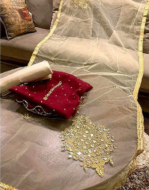 - Fine Quality Mirror Work Embroidered Net Dupatta