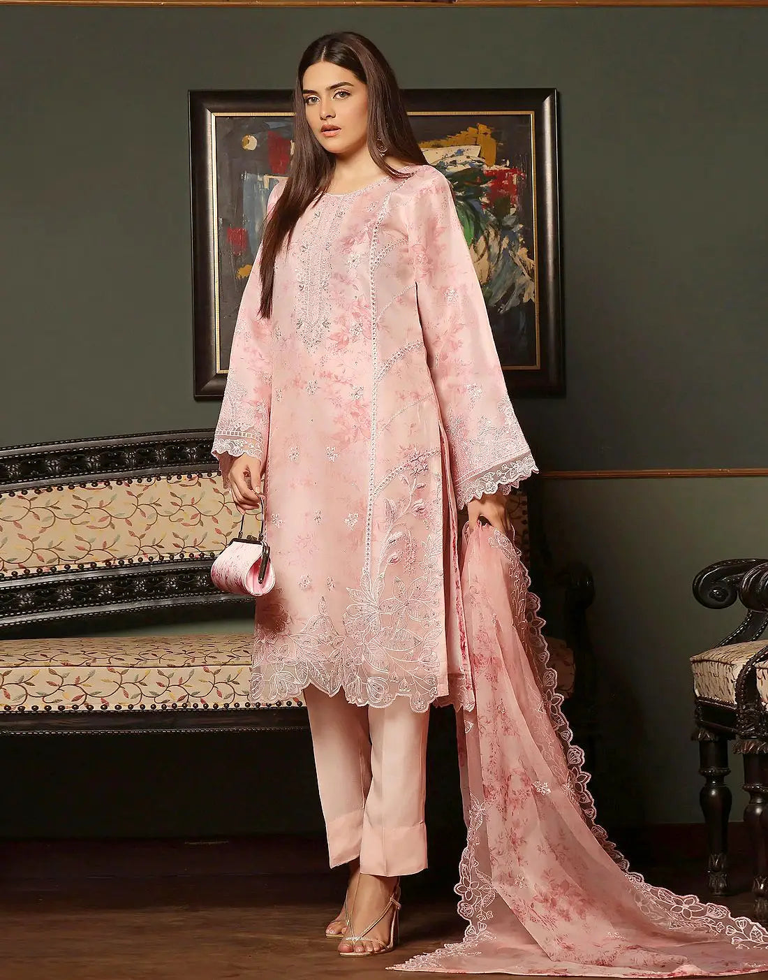 - Dupatta: Ready-to-Wear Digital Print Embroidered Organza Dupatta