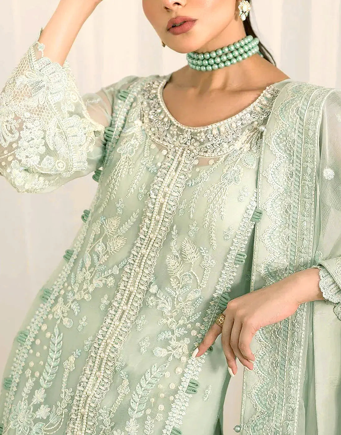 Looking to buy Heavy Embroidered Mint Green Chiffon Formal Party & Wedding Dress with Handcrafted Neckline online in Pakistan? Discover modern designs, reliable quality, and the best price available. Shop now and enjoy fast delivery and secure checkout.