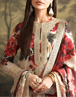 Step into effortless elegance with the All‑Over Digital Print Embroidered Silk Dress, designed for women who want style with comfort. In Pakistan's festive season, the challenge is finding an outfit that feels luxurious yet easy to carry, this silk dress is the perfect answer. Made from premium silk, it drapes beautifully and keeps you comfortable during long daawats in Karachi or wedding functions in Lahore. The vibrant digital print adds a modern flair, while the delicate embroidery enhances its timeless appeal.
