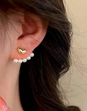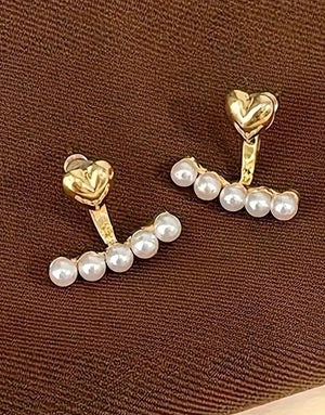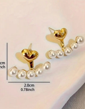 Vintage Faux Pearls & Decor Heart Stud Earrings for Ladies