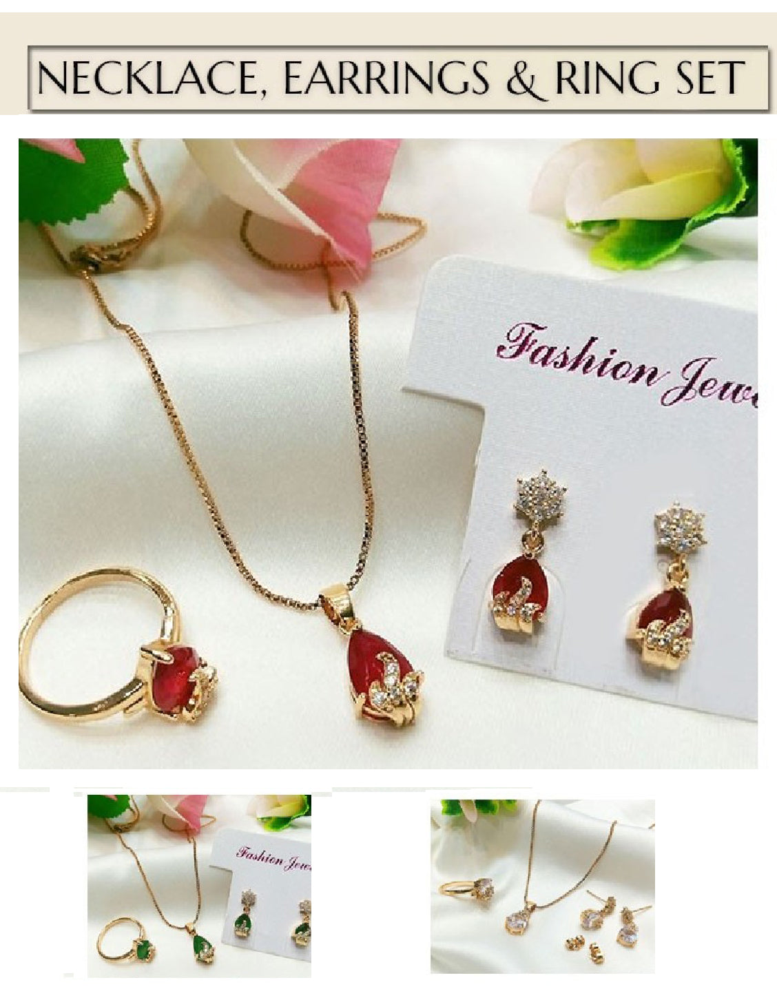 Looking to buy Beautiful Faux Ruby Necklace, Earrings & Ring Jewelry Set of Your Color Choice online in Pakistan? Discover modern designs, reliable quality, and the best price available. Shop now and enjoy fast delivery and secure checkout.