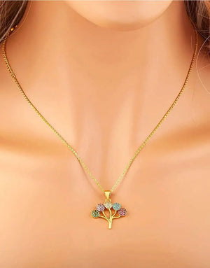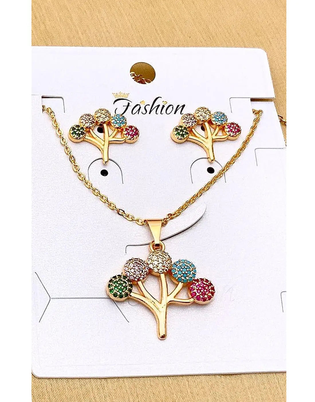 Stylish Minimalist Multicolor Tree Design Necklace & Earrings Set for Girls