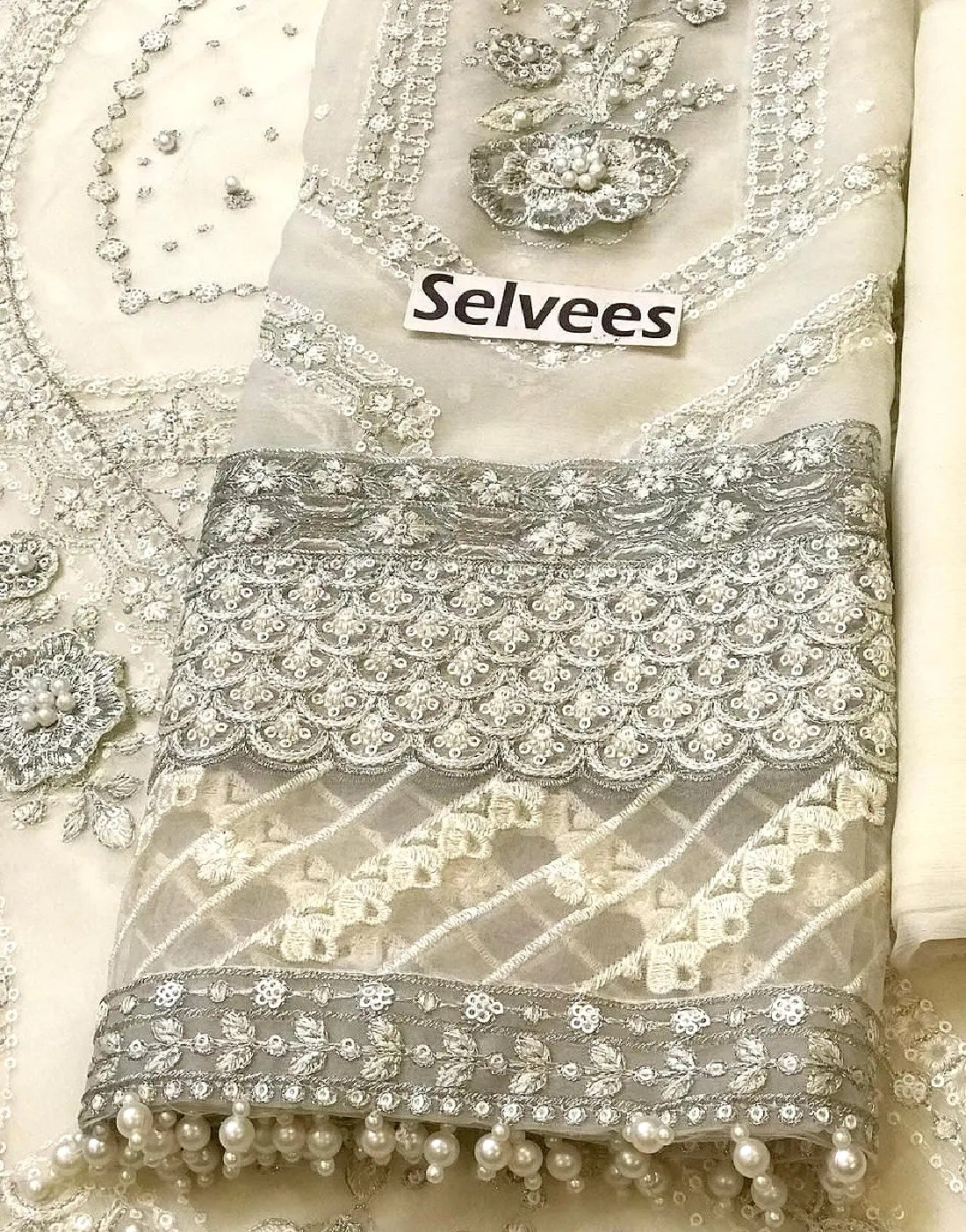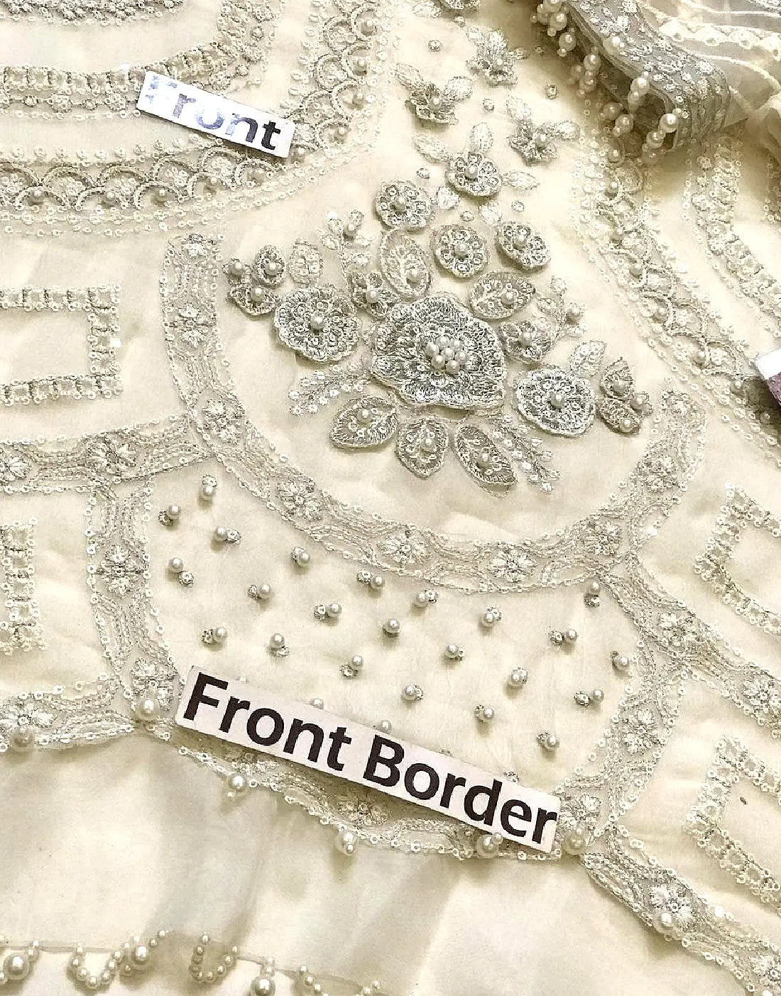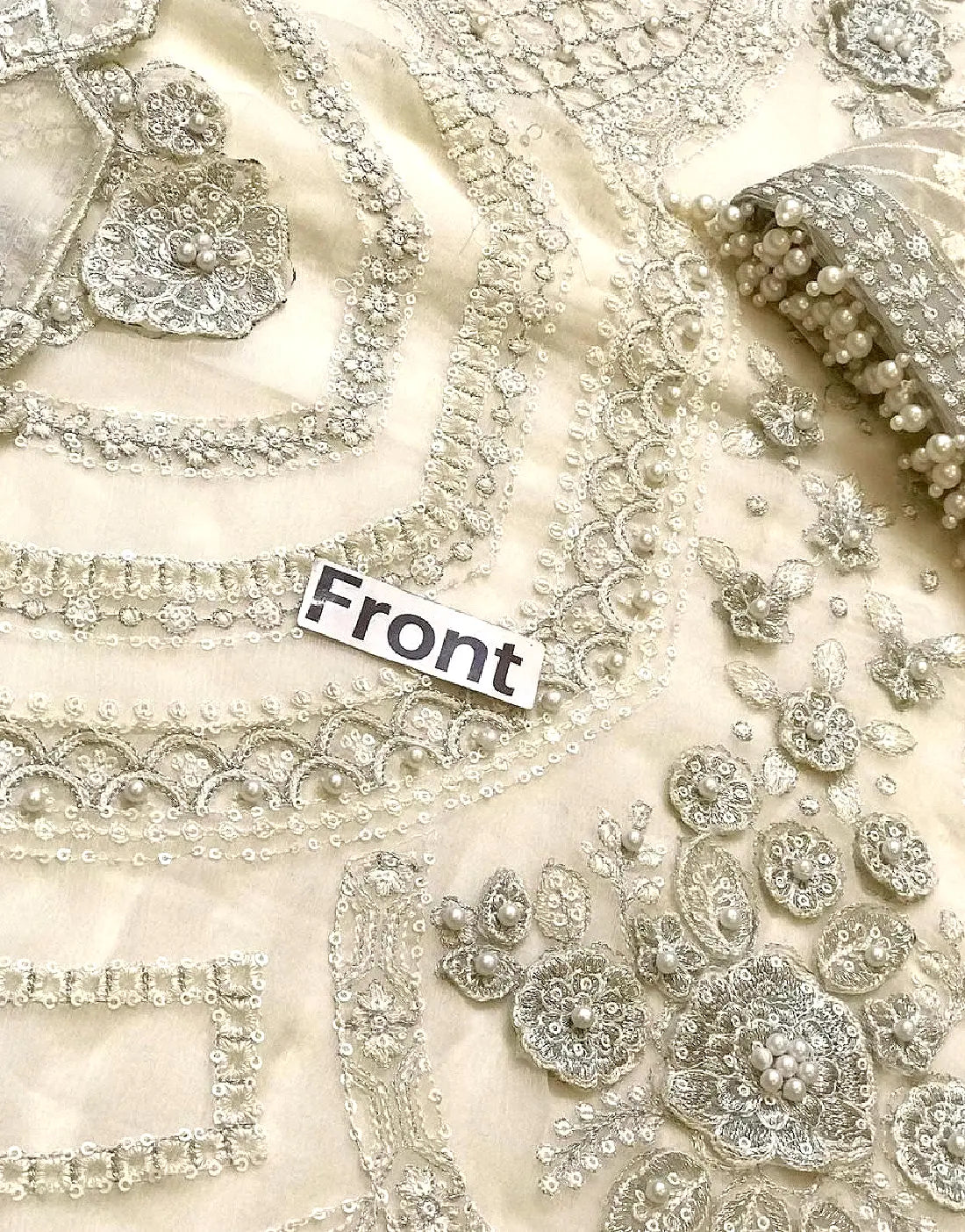 Classic Poise 3D Embroidered Chiffon Pearl Work Dress for Nikkah & Weddings