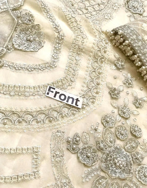 - Work Details: Alternate Embroidery with Zari, Thread, Pearls & Sequins Work