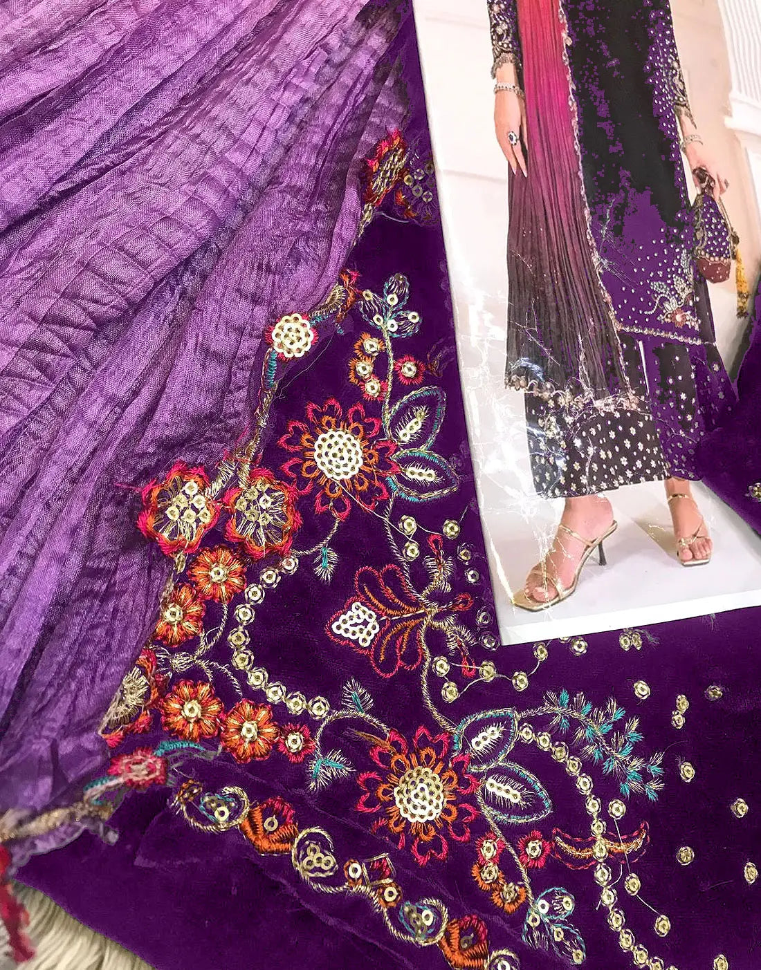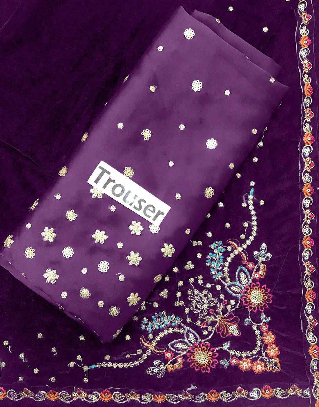 Looking to buy Contemporary Embroidered Royal Purple Velvet Wedding Dress with Matching Velvet Pouch online in Pakistan? Discover modern designs, reliable quality, and the best price available. Shop now and enjoy fast delivery and secure checkout.