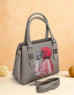 Stylish Hijabi Girl Printed Gray Synthetic Leather Handbag