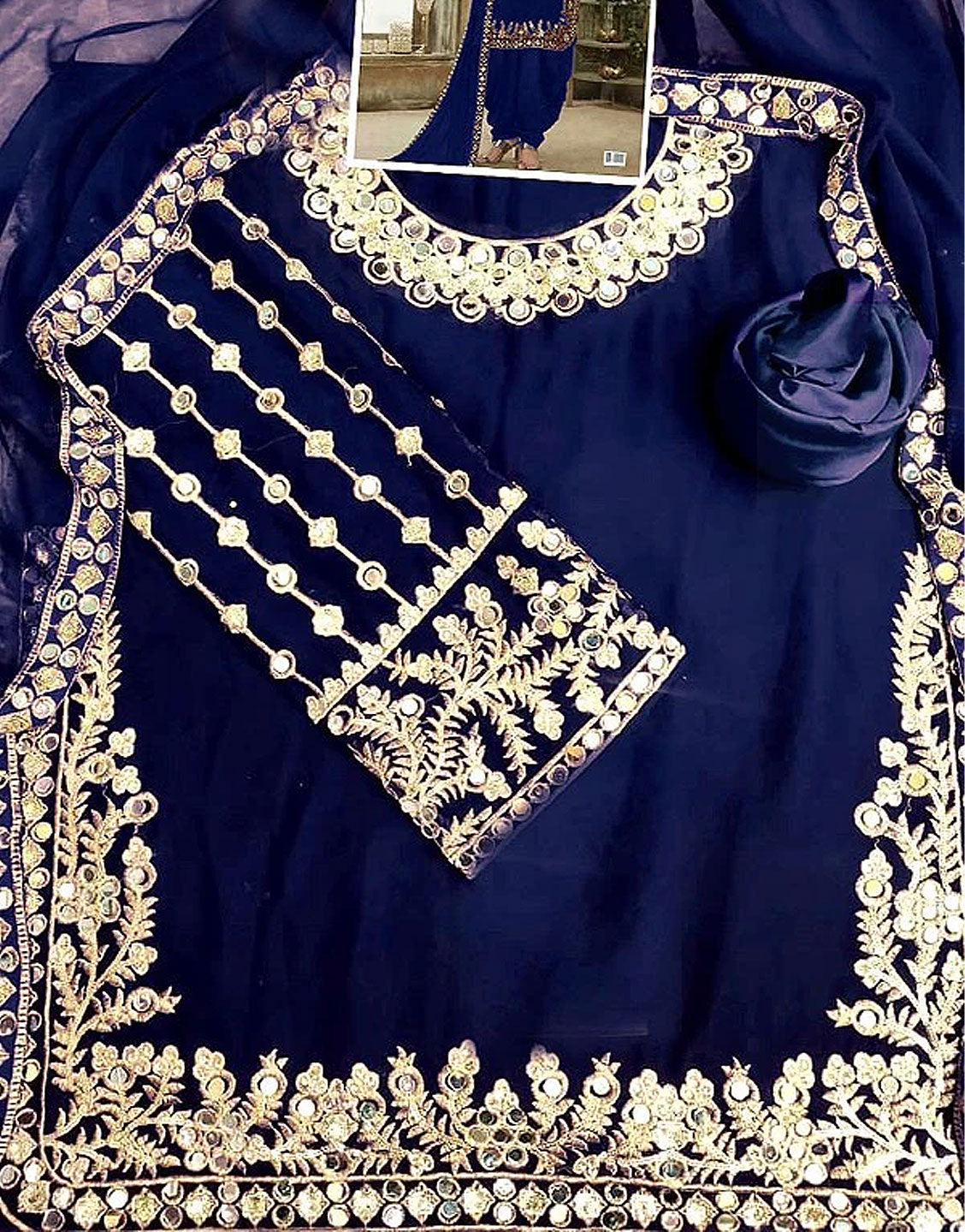 Looking to buy Indian Embroidered & Mirror Work Navy Blue Chiffon Dress online in Pakistan? Discover modern designs, reliable quality, and the best price available. Shop now and enjoy fast delivery and secure checkout.