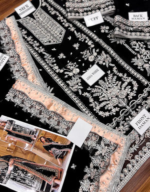 Aneela's Luxury Handwork Embroidered Black Chiffon Wedding Wear Dress