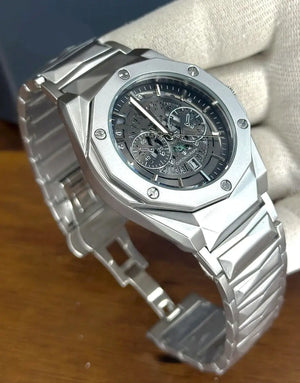 Designed with a striking static skeleton dial, it offers a distinctive look that instantly sets you apart. The diamond‑cut detailing adds a refined sparkle, while the stainless steel chain ensures strength, durability, and a polished finish. This luxury watch is versatile enough to complement your office attire, wedding outfit, or even a casual evening look, making it a must‑have accessory for every occasion.