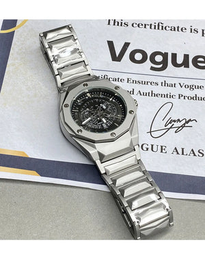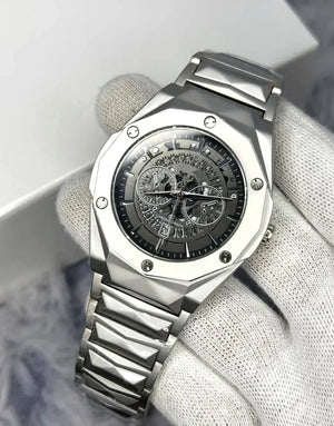 Luxury Diamond Cut Skeleton Men's Watch with Stainless Steel Chain
