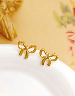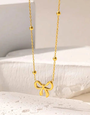 Minimalist Gold Plated Stainless Steel Bow Shaped Locket Set