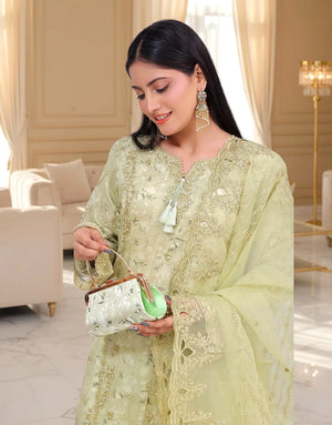 Looking to buy Haleema Semi-Stitched Premium Embroidered Organza Party Dress with Matching Cutch Bag online in Pakistan? Discover modern designs, reliable quality, and the best price available. Shop now and enjoy fast delivery and secure checkout.