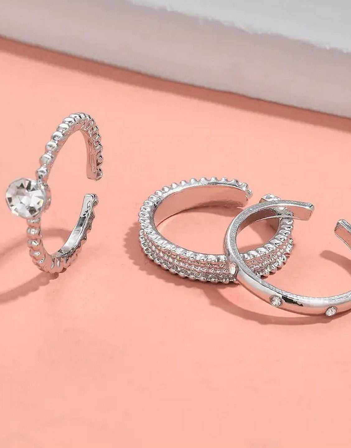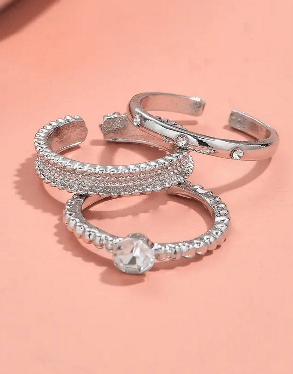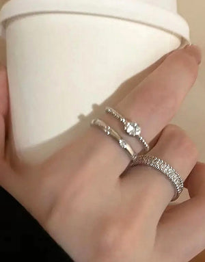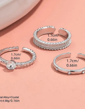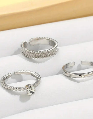 Pack of 3 Adjustable Synthetic Cubic Zirconia Alloy Rings Set for Girls & Ladies