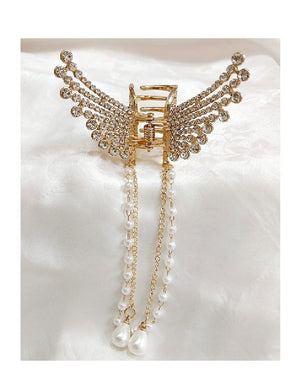 Rhinestone Pearl Angel Wings Design Hair Catcher - Golden