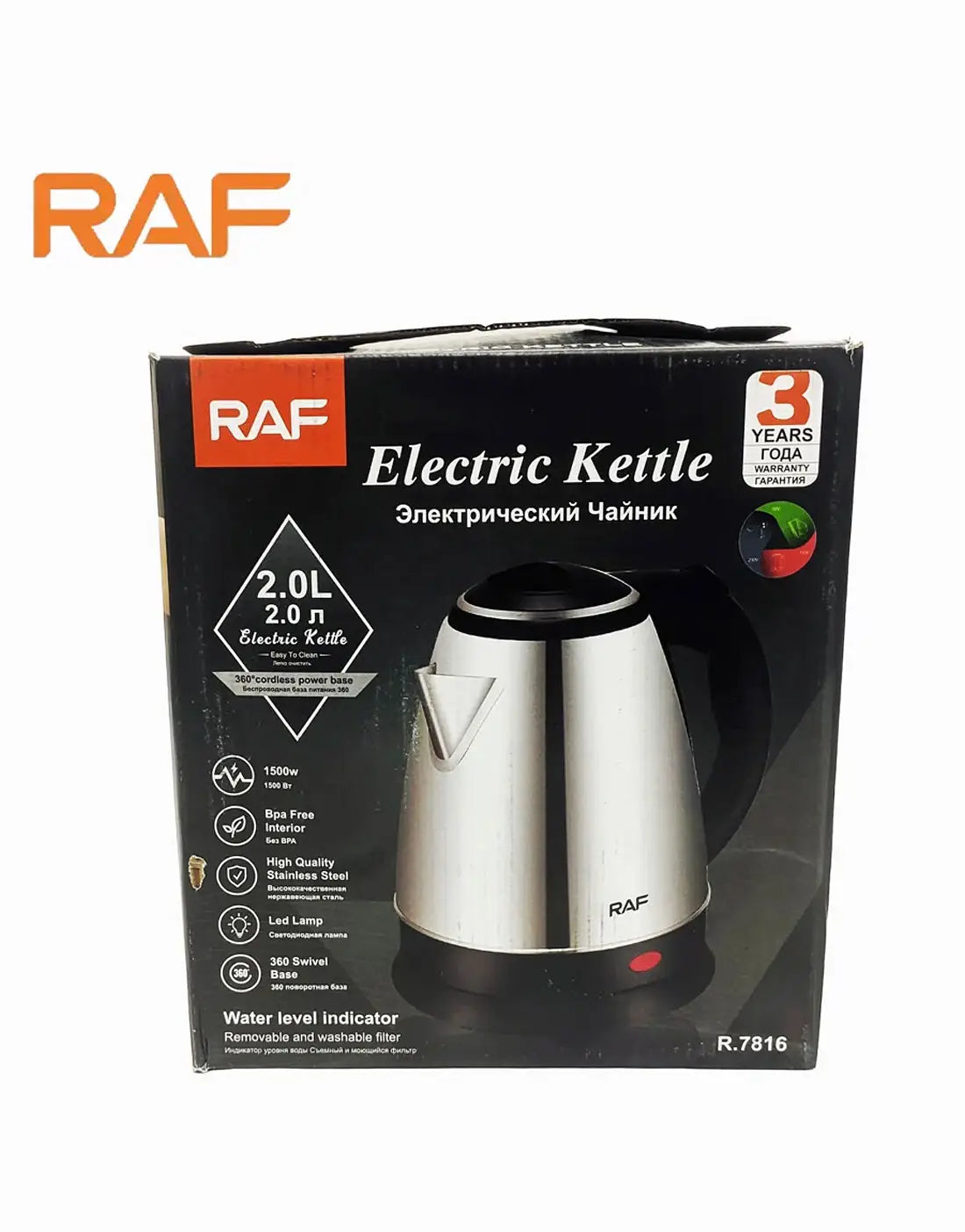 Tired of waiting endlessly for water to boil on the stove? The RAF Automatic Electric Kettle is your go-to solution for quick chai, coffee, or boiling water needs. With a powerful 1500W concealed heating element, this 2.0L stainless steel kettle brings water to a boil in minutes, perfect for busy mornings or unexpected guests. Its cordless 360Β° rotating base offers hassle-free pouring, while the auto shut-off and water level indicator ensure safe, efficient use.