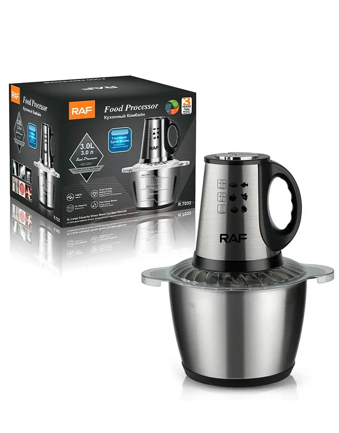 RAF 3L Food Processor, Vegetable & Meat Chopper, Qeema Machine R7032 – Stainless Steel Bowl 1000W