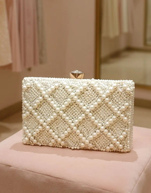 - Product: White Pearls Clutch Purse