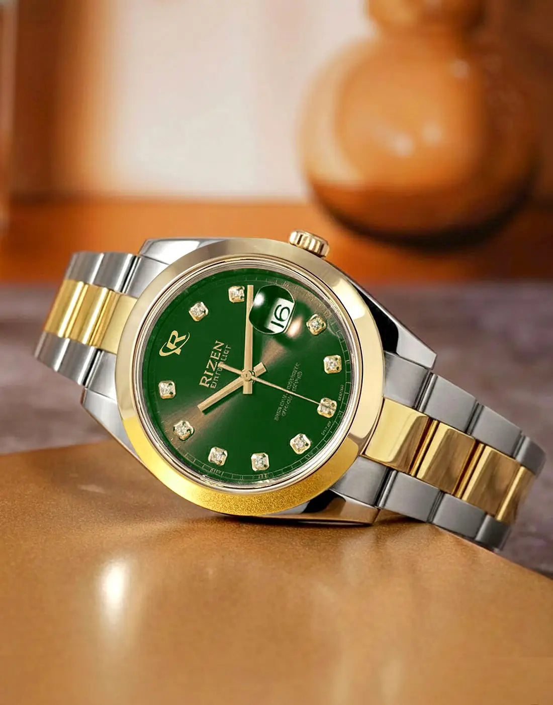 Rizen Oyster Perpetual Datejust Men’s Luxury Watch with Stainless Steel Chain