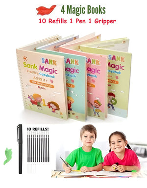 Sank Magic Reusable 4 Practice Copybook + Magic Pen with 10 Refills