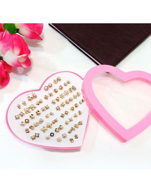 36 Pairs Golden Stud Earrings Set for Girls with Heart Shape Gift Packing
