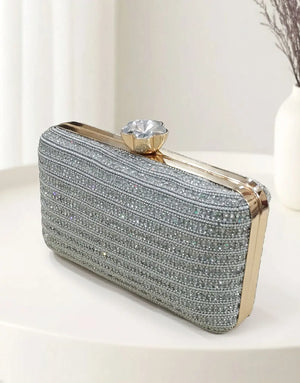 Glitter Silver Diamante Clutch Purse for Formal & Party Wear