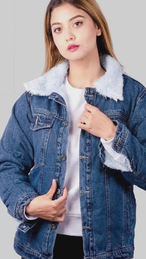 Unisex Stylish Fur Denim Jacket for Winters | Warm Jean Jacket for Men & Women