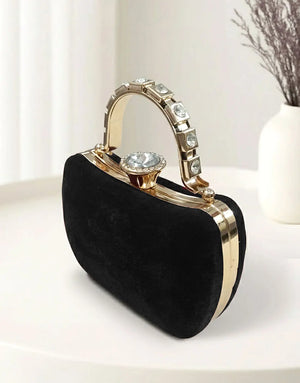 Luxury Black Velvet Bridal Clutch Purse with Stylish Hand Grip