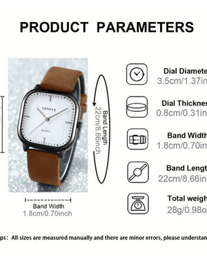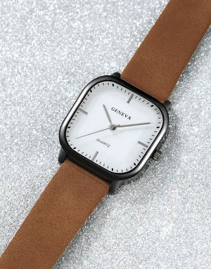 Unisex PU Leather Strap Casual Watch - Brown