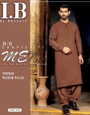 IB Unstitched Wash n Wear Brown Shalwar Kameez for Men – Premium Quality Fabric